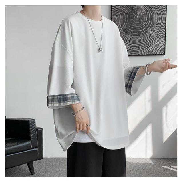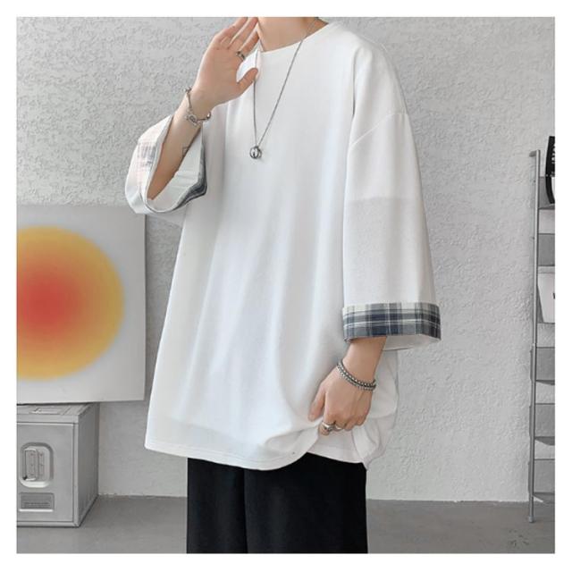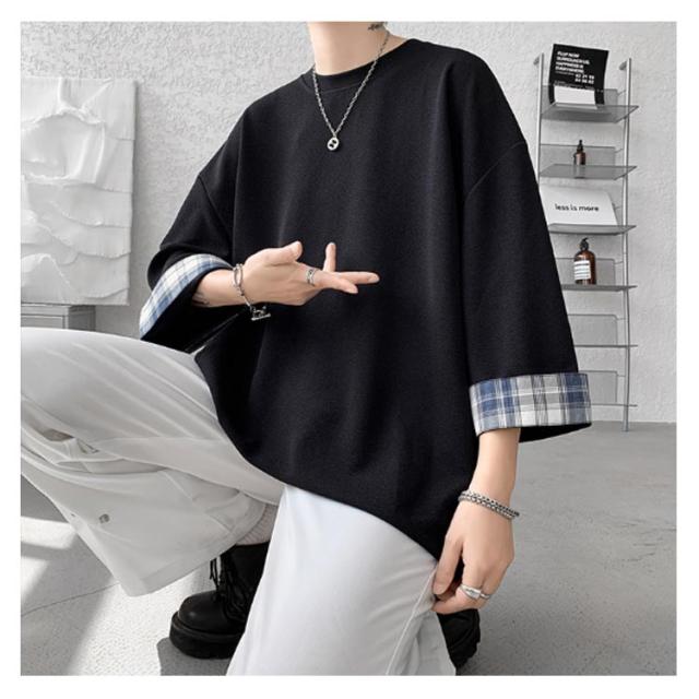 メンズ tシャツ おしゃれ 半袖 半そで Tシャツ ビッグシルエット 韓国 ファッション 無地 白tシャツ Tシャツ ティーシャツ ビッグtシャツ 韓国服 チェック ブラック