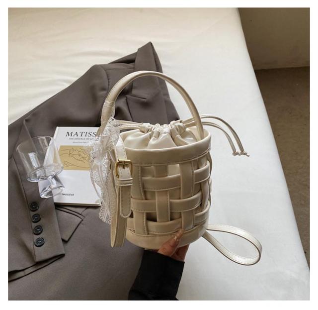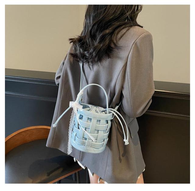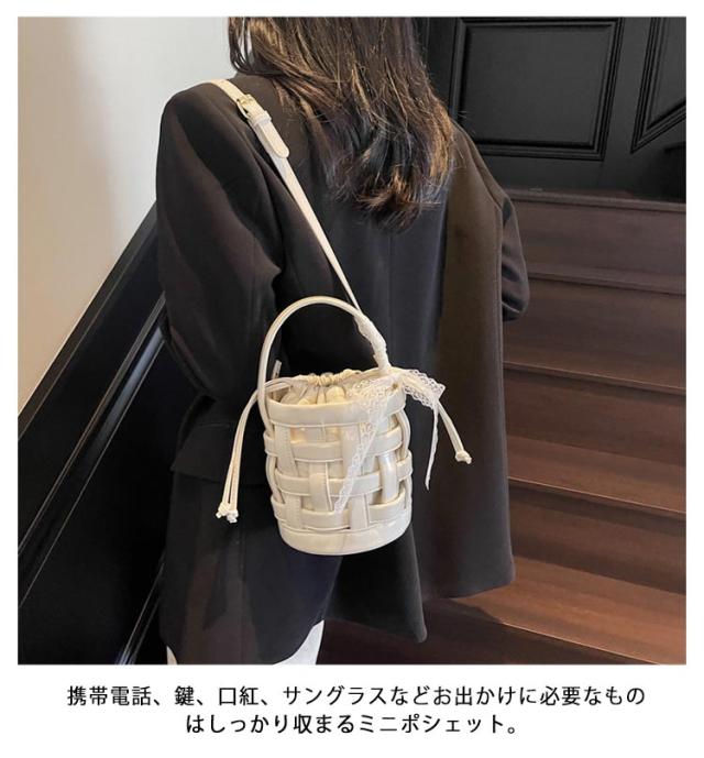 スマホポーチ 巾着バッグ 合皮 編み込み 自立 かごバッグ スマホショルダーバッグ 籠バッグ 可愛い ショルダーバッグ ショルダー バケツバッグ レザー レディース バケットバッグ