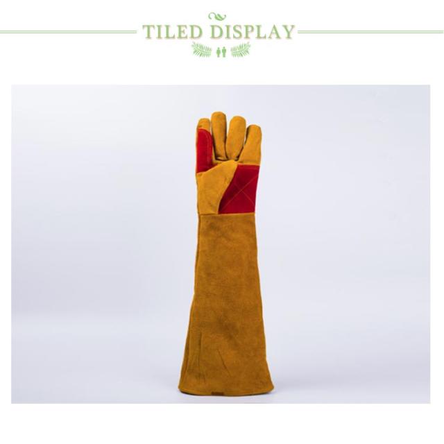 | 二の腕までしっかりカバーでき、動物の噛みつきや引っ?きから腕を保護するロングタイプのグローブです。 ペットの噛み癖のしつけ、野良猫の保護、爪切り等のケアの際や傷防止に役立ちます。しっかりとした厚みのある牛革製で、しなやかですが牙や爪を通すことなくとても丈夫です。 通気性も良くソフトで肌に優しい感触が◎丁寧な縫製と柔らかな内布で着け心地も快適です。ガーデニング時の虫除けにも最適です。 熱に強く、耐久性があるため、アウトドアのバーベキュー、BBQ、ダッチオーブン、クッキングや薪ストーブ、溶接作業にご使用頂けます。 | |