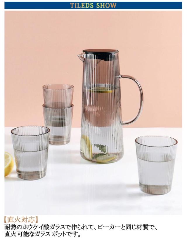 | 茶こし付き 耐熱ガラスジャグ 1300ml 【直火対応】耐熱のホウケイ酸ガラスで作られて、ビーカーと同じ材質で、直火可能なガラス ポットです 【簡単に洗える】ボトルの口径が大きく、手が直接差し込めて清潔できます 【-20℃〜150℃対応】麦茶、紅茶、ジュース、コーヒー、ミルクなどの飲み物を淹れたい時にご気楽にお使えいただけます。-20℃〜150℃、耐熱ガラスので、温かい飲み物にも冷たい飲み物にも使える耐熱ガラス製のピッチャーです | |