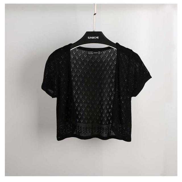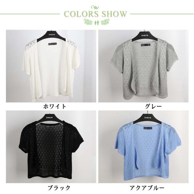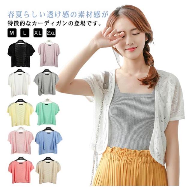 半袖カーディガン レディース 春 半袖 ボレロ 透かし編み 羽織り サマーカーディガン サマーカーディガン カーディガン トップス 夏 サマーニット 透け感 ニットカーディガン 羽織り ショート丈 シンプル 無地