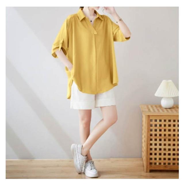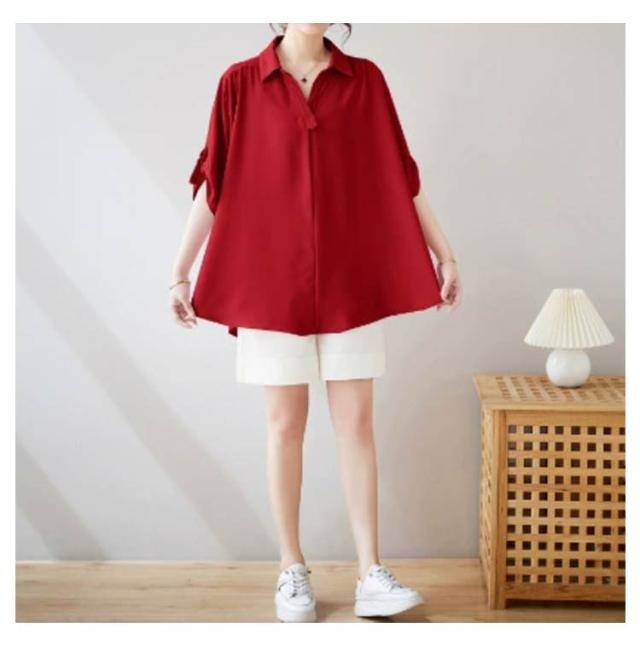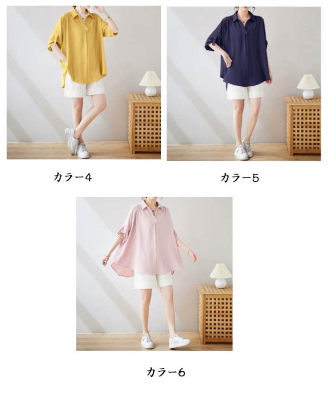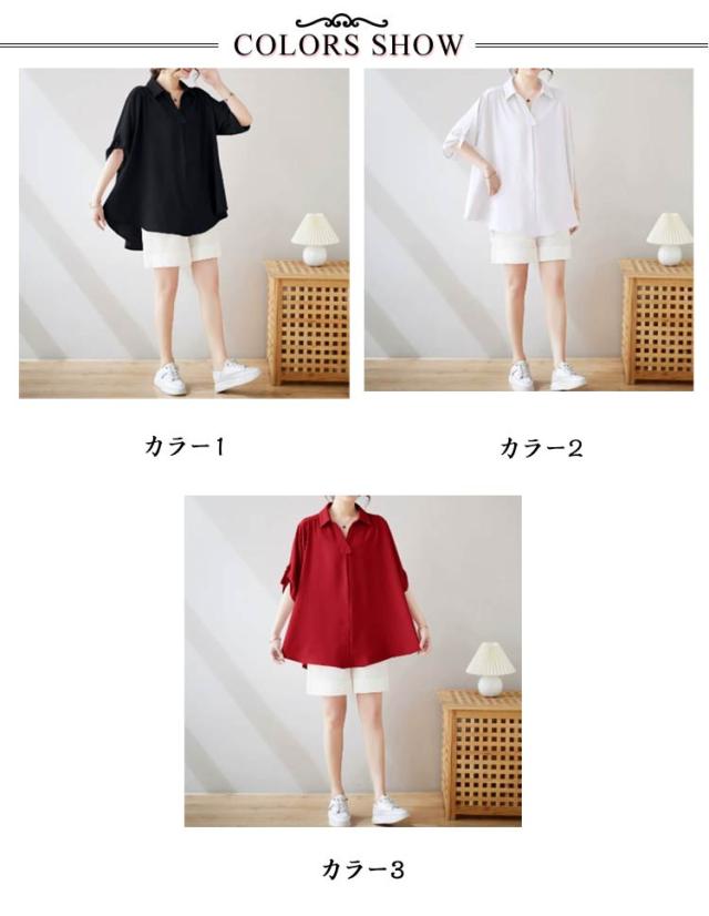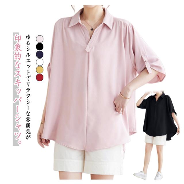 チュニック スキッパートップス 半袖 五分袖 レディース スキッパーシャツ シャツ 夏 ロールアップ 送料無料 春 ブラウス 無地 ゆったり きれいめ 春 夏 上品 カジュアル オフィス