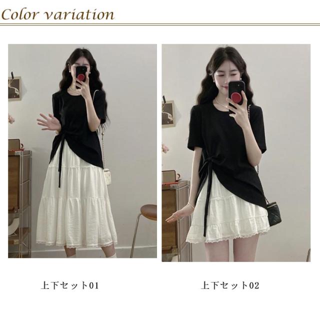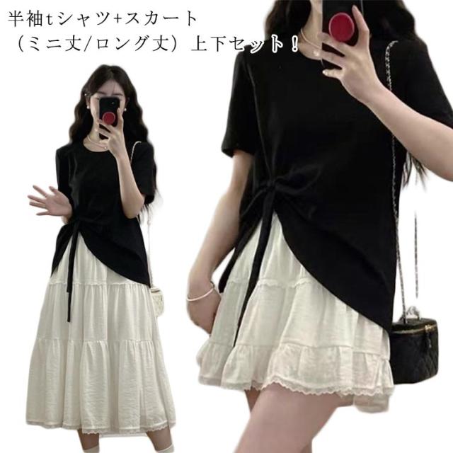 半袖tシャツ スカート 上下セット レディース トップス ミニスカート 可愛い セットアップ ロングスカート 無地 シンプル おしゃれ きれいめ ガールズ 韓国ファッション カジュアル 半袖tシャツ 大きいサイズ 夏服