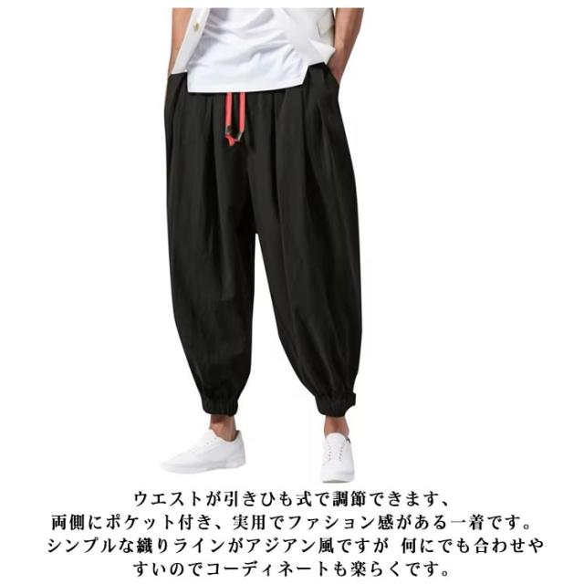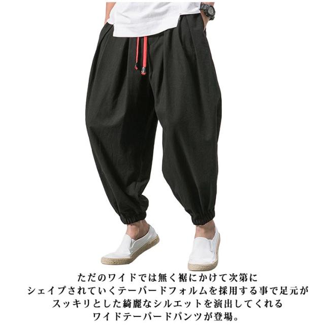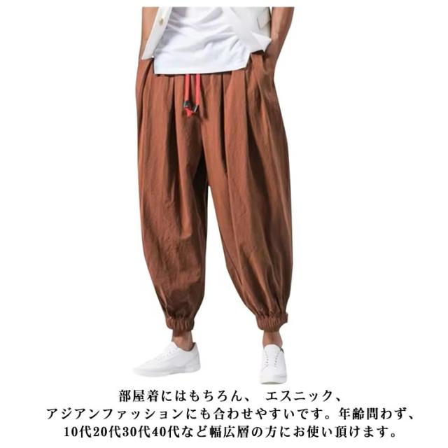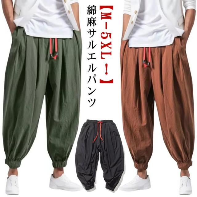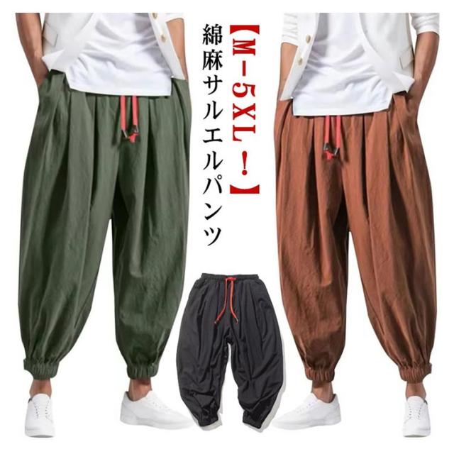 | 【M-5XL!】綿麻サルエルパンツ 優れた通気性、発汗性を持ち、肌触りも柔らかく、着心地の良さも抜群。春夏秋にもさわやかに着られます。 ウエストが引きひも式で調節できます、両側にポケット付き、実用でファション感がある一着です。シンプルな織りラインがアジアン風ですが 何にでも合わせやすいのでコーディネートも楽らくです。 ただのワイドでは無く裾にかけて次第にシェイプされていくテーパードフォルムを採用する事で足元がスッキリとした綺麗なシルエットを演出してくれるワイドテーパードパンツが登場。 部屋着にはもちろん、 エスニック、アジアンファッションにも合わせやすいです。年齢問わず、10代20代30代40代など幅広層の方にお使い頂けます。 | |