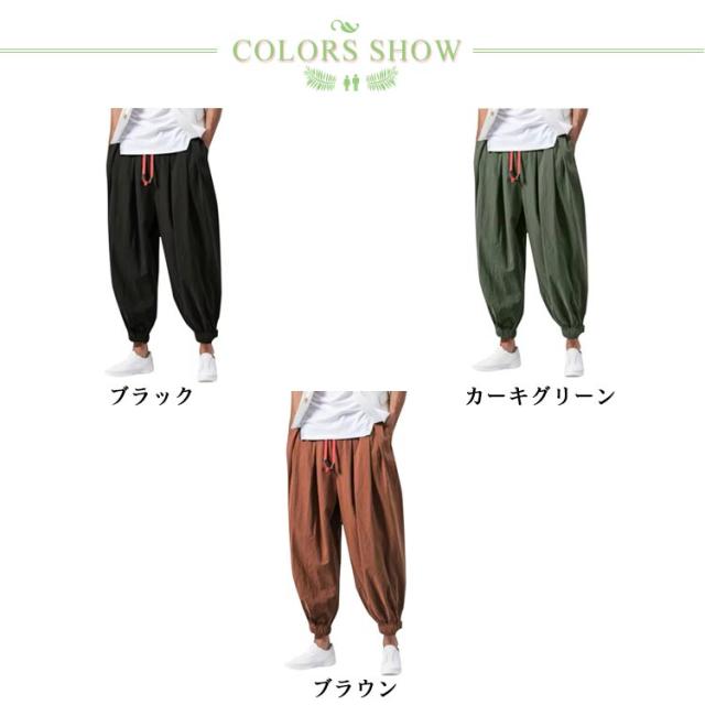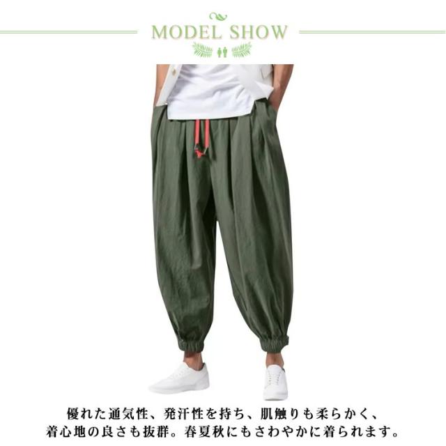 メンズ ワイドパンツ ガウチョパンツ メンズ 夏服 綿麻調 ボトムス サルエルパンツ サルエルパンツ リネン風パンツ イージーパンツ ハーレムパンツ カジュアル ズボン 薄手 通気 無地 ゆったり 大きいサイズ ロングパンツ 父の日