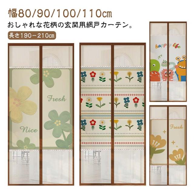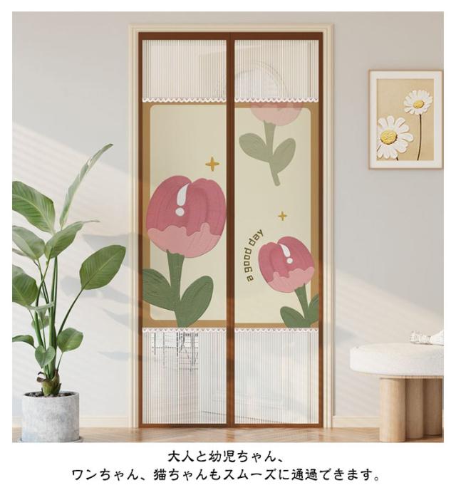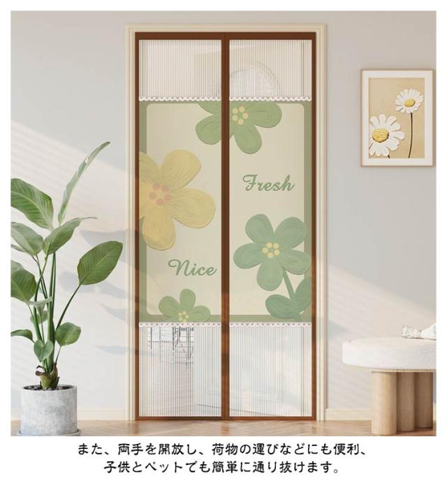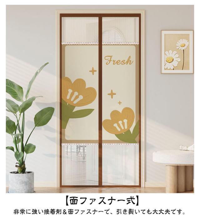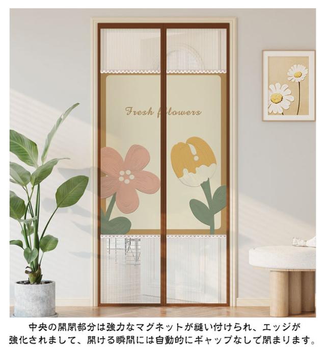 ロング 花柄 風通し 網戸 カーテン カーテン 暖簾 間仕切り 玄関 可愛い おしゃれ マグネット 取り付け 簡単 目隠し 網戸 のれん 簡易網戸 貼るだけ 防虫ネット 換気 玄関 防虫網 網戸 扉用 張り替え 蚊を防ぐ 玄関 ドア