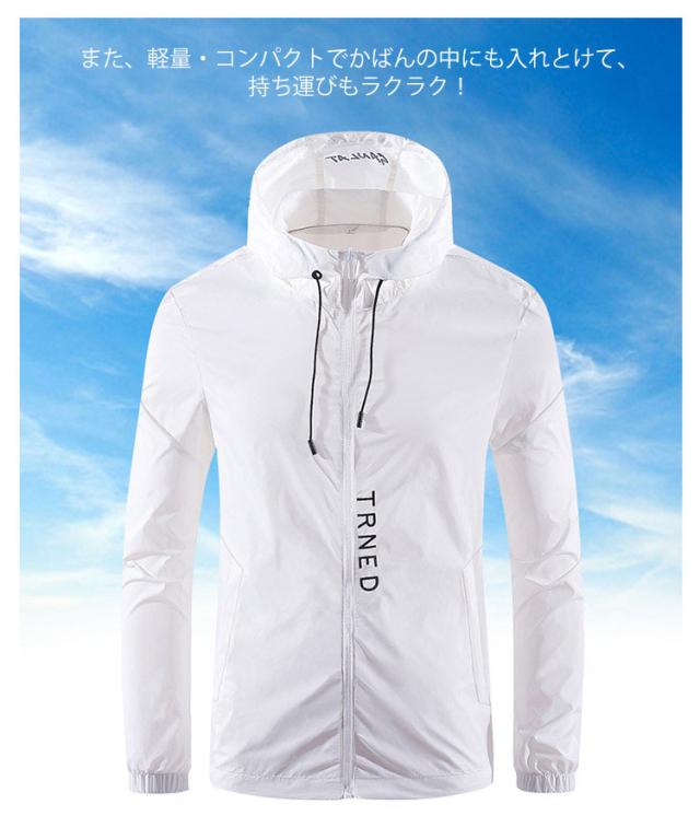 | 接触冷感のある生地を使用し、薄手でしっかりUVカットできるパーカー。 速乾性に優れた素材で、汗や水を吸収していつでもサラサラの着心地。 また、軽量・コンパクトでかばんの中にも入れとけて、持ち運びもラクラク! フロントにはファスナー仕様で着脱簡単。シンプルなカラーだから幅広い方にオススメ! 通勤通学の時も日焼け止め用服としてtシャツの上に羽織るのもいいですし、寒すぎる冷房の中に必須のアウターとしても便利です。 | |