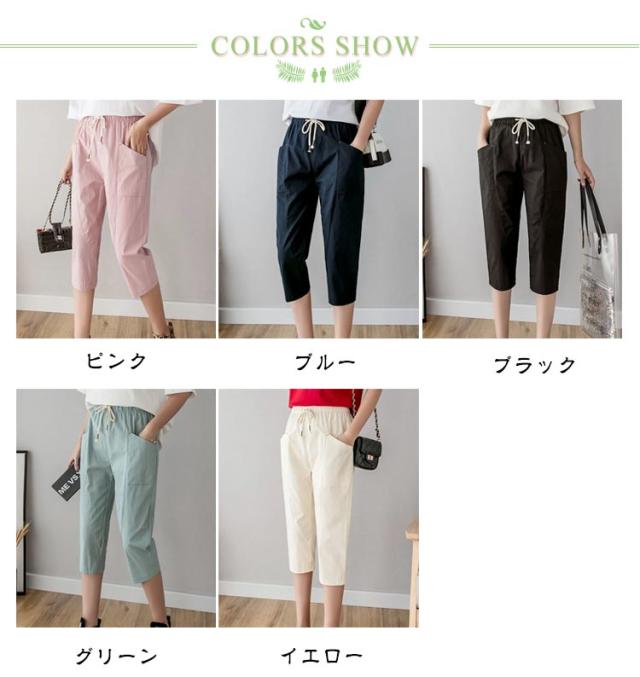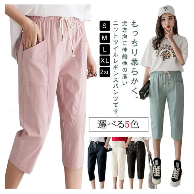 冷感パンツ パンツ イージーパンツ クロップド 7分丈 レディース 夏 接触冷感 吸汗速乾 スキニーパンツ くしゅくしゅ スリム 冷感 ウエストゴム 涼しい 細見せパンツ 夏 涼しい ズボン 細見せパンツ ポケット付き カプリパンツ ゆったり 細見え 着痩せ