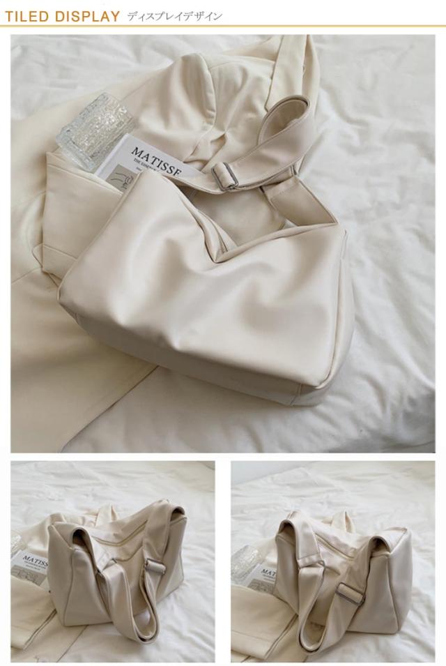 | ・スクエアショルダーバック ・レザー調の生地で大人っぽい雰囲気を演出したバッグです。 ・太めのショルダーなので、疲れにくいのもオススメ。 | |