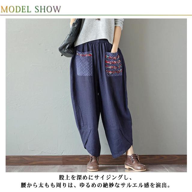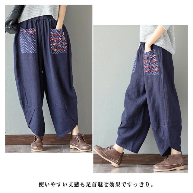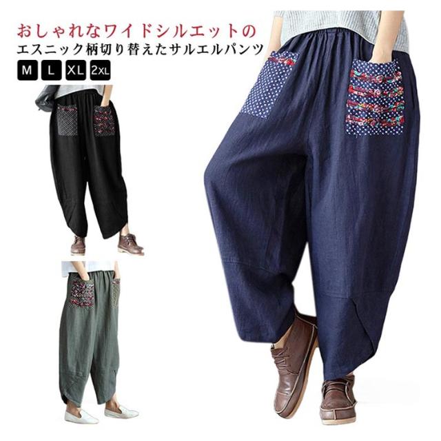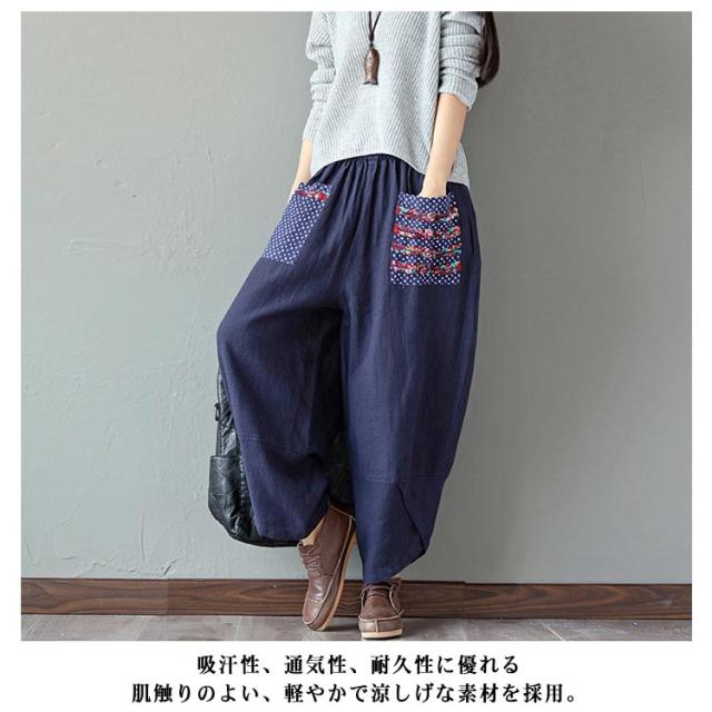 レディース パンツ コクーンパンツ バルーンパンツ ゆったり バルーンパンツ ワイドパンツ パンツ 春 秋 夏 ボトムス ガウチョパンツ ロング丈 エスニック風 体型カバー 着?せ ナチュラ宇 ウエストゴム ファッション 涼しい 通勤