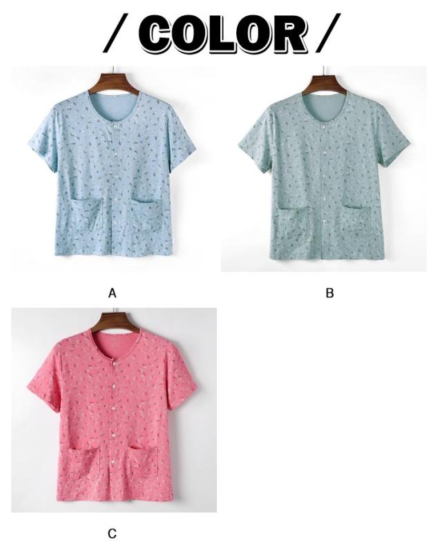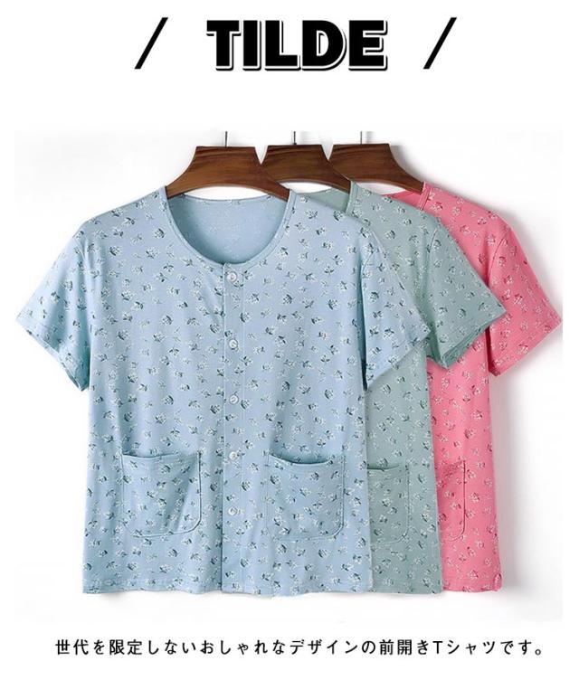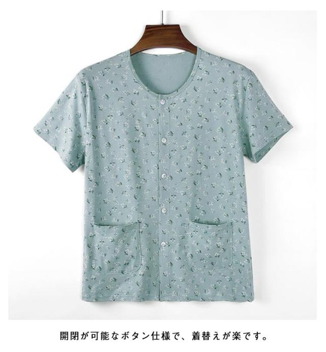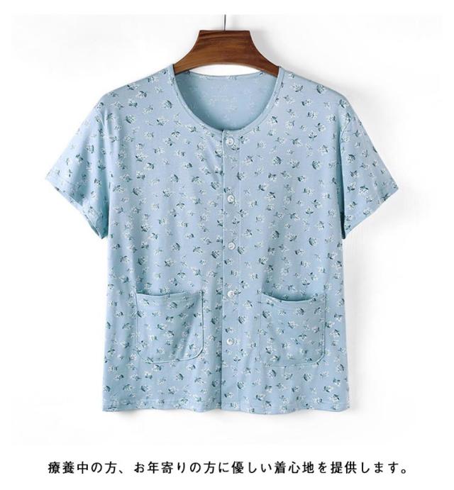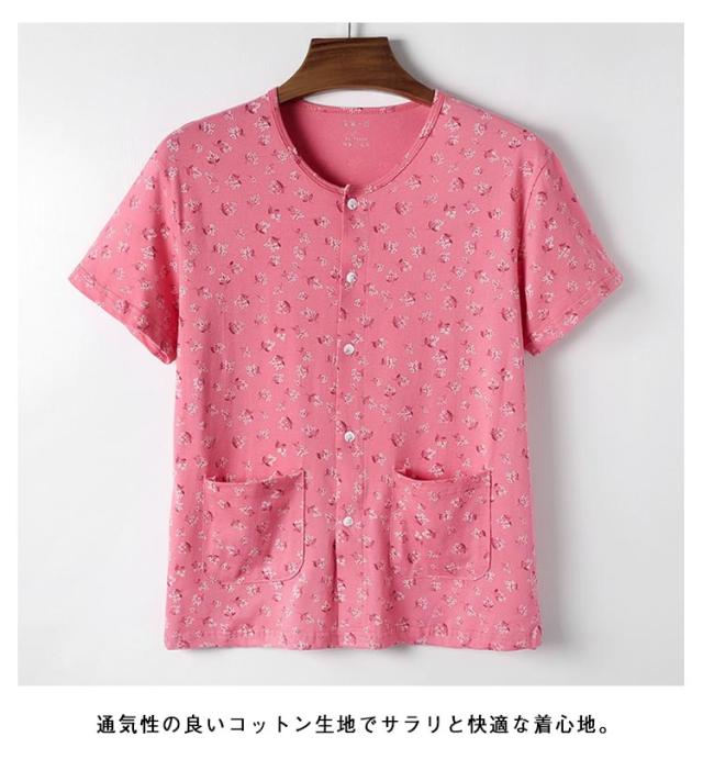 快適 総柄 ルームウェア 部屋着 快適 レディース 前あき パジャマ クールネック 綿 ルームウェア 薄手 春 半袖 ルームトップス 介護用 ナチュラル 女性 大きいサイズ ルームウエア 婦人用 トップス Tシャツ 高齢者 シニア 春 吸汗速乾 パジャマ 入院 手術 介護服 ポケット付き