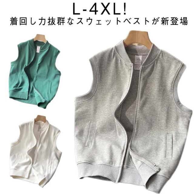 大きいサイズ レディース スウェットベスト ジップアップベスト パーカー アウター ノースリーブ スウェット 春夏 パーカーベスト ジレ ジップアップベスト ノーカラー 羽織り トップス ベスト 重ね着 ジップアップ フードなし