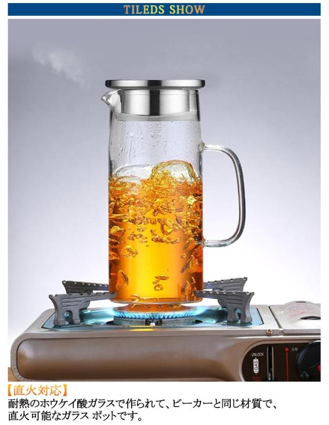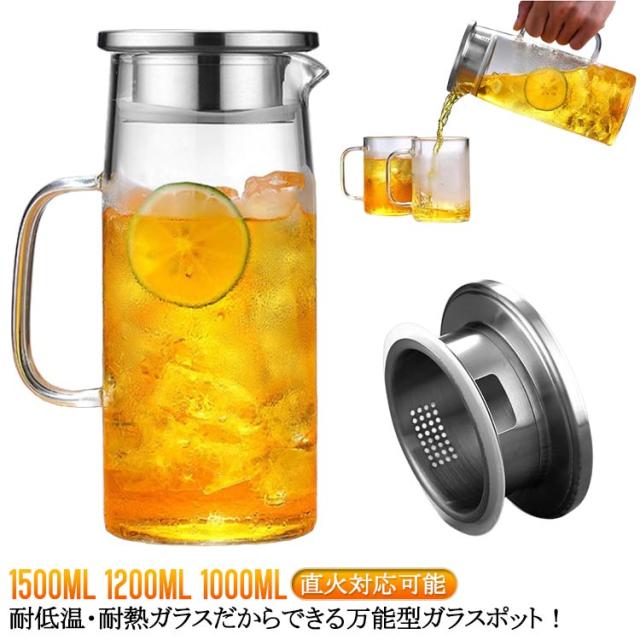 | 1500ml 1200ml 1000ml 耐低温・耐熱ガラスだからできる万能型ガラスポット! 【直火対応】耐熱のホウケイ酸ガラスで作られて、ビーカーと同じ材質で、直火可能なガラス ポットです 【簡単に洗える】ボトルの口径が大きく、手が直接差し込めて清潔できます 【-20℃〜150℃対応】麦茶、紅茶、ジュース、コーヒー、ミルクなどの飲み物を淹れたい時にご気楽にお使えいただけます。-20℃〜150℃、耐熱ガラスので、温かい飲み物にも冷たい飲み物にも使える耐熱ガラス製のピッチャーです | |