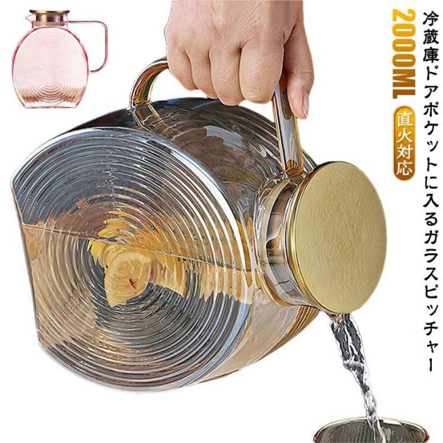 ウォーターピッチャー スリム ガラス 耐熱 2リットル 2l 耐熱 冷蔵庫 冷蔵庫ポット 直火対応 麦茶ポット 取って付き 冷水筒 麦茶 ドアポケット ポット 洗いやすい 水差し ボトル ジャグ スリムジャグ 水 おしゃれ 冷茶ポット ステンレス蓋 お茶入れ 直火 ガラスケトル