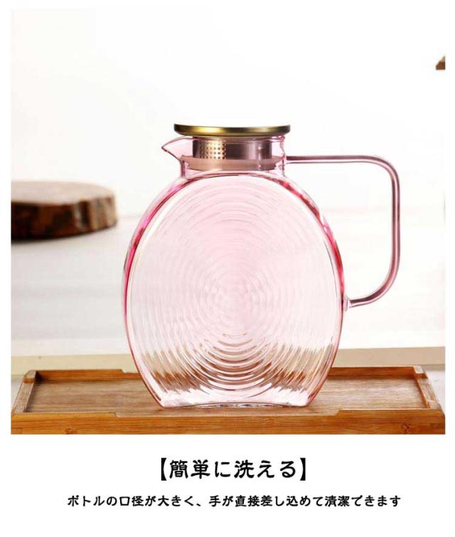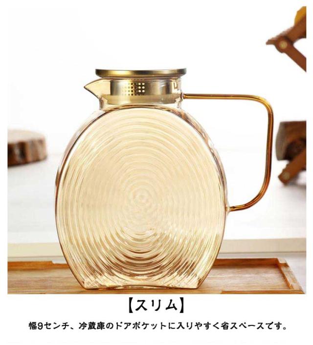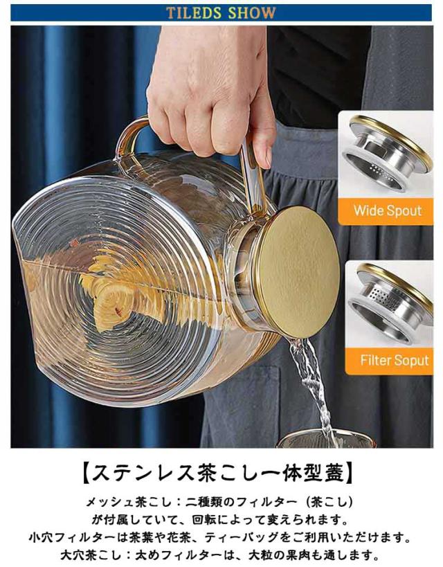 | 【直火対応】【2000ml】【冷蔵庫ドアポケットに入るガラスピッチャー】 【直火対応】耐熱のホウケイ酸ガラスで作られて、ビーカーと同じ材質で、直火可能なガラスポットです 【簡単に洗える】ボトルの口径が大きく、手が直接差し込めて清潔できます 【-20℃〜150℃対応】麦茶、紅茶、ジュース、コーヒー、ミルクなどの飲み物を淹れたい時にご気楽にお使えいただけます。-20℃〜150℃、耐熱ガラスので、温かい飲み物にも冷たい飲み物にも使える耐熱ガラス製のピッチャーです 【ステンレス茶こし一体型蓋】メッシュ茶こし:二種類のフィルター(茶こし)が付属していて、回転によって変えられます。小穴フィルターは茶葉や花茶、ティーバッグをご利用いただけます。大穴茶こし:太めフィルターは、大粒の果肉も通します。 【スリム】幅9センチ、冷蔵庫のドアポケットに入りやすく省スペースです。 | |