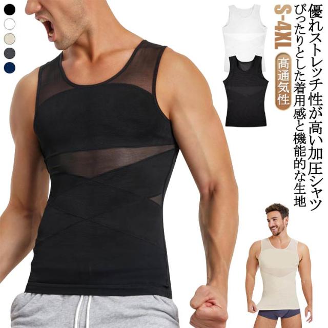 メンズ 半袖 着圧 強圧 補正下着 垂れ胸補正 加圧シャツ 補正 乳首隠し スタイルアップ 加圧Tシャツ 加圧インナー インナー 夏