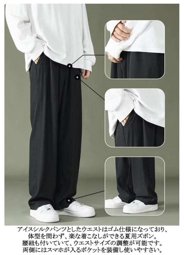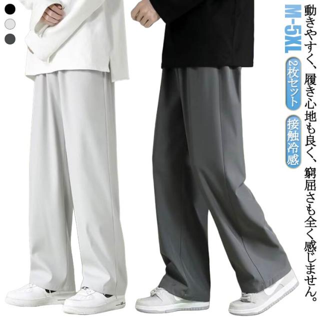 2枚セット 2枚セット 冷感パンツ 涼しい メンズ 接触冷感 ずぼん ボトムス イージーぱんつ ズボン スラックス ストレートパンツ アイスシルクパンツ 大きいサイズ メンズ オフィスカジュアル ロングパンツ