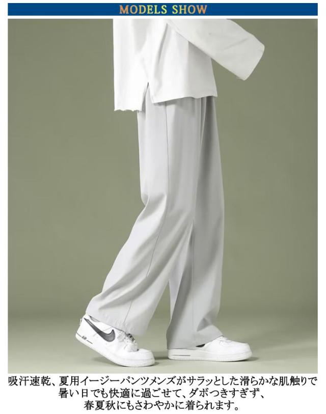 | 2枚セット! 動きやすく、履き心地も良く、窮屈さも全く感じません。吸汗速乾、夏用 イージーパンツ メンズがサラッとした滑らかな肌触りで暑い日でも快適に過ごせて、ダボつきすぎず、春夏秋にもさわやかに着られます。 アイスシルクパンツとしたウエストはゴム仕様になっており、体型を問わず、楽な着こなしができる夏用ズボン。腰紐も付いていて、ウエストサイズの調整が可能です。両側にはスマホが入るポケットを装備し使いやすさい。 サラッとはきやすいアイスシルクパンツ。カジュアルな見た目ながらも、無駄な装飾を施さないシンプルなデザインで様々なコーディネートにマッチします。 新感覚の接触冷感ロングパンツ イージーな履き心地なのにきちんと見えするので、大人カジュアルスタイルにもぴったりのデザイン。普段着にはもちろん部屋着にもお勧め! M-5Lイズがあり、20代30代40代50代など幅広層の方にお使い頂けます。普段のお出かけや 旅行、ビジネス、ゆったりとしている日常着、部屋着、通勤通学、カジュアルコーディなど様々なシーンで着て頂けます。 | |