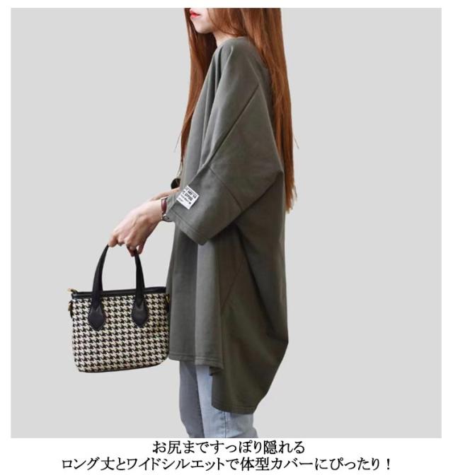 5分袖 お尻隠し ロング丈 無地 ビッグシルエット チュニック ゆったり レディース トップス カットソー 体型カバー ドロップショルダー ティシャツ ゆる レディース ワイド 半袖ロングTシャツ 大人かわいい 大人可愛い おしゃれ マタニティ