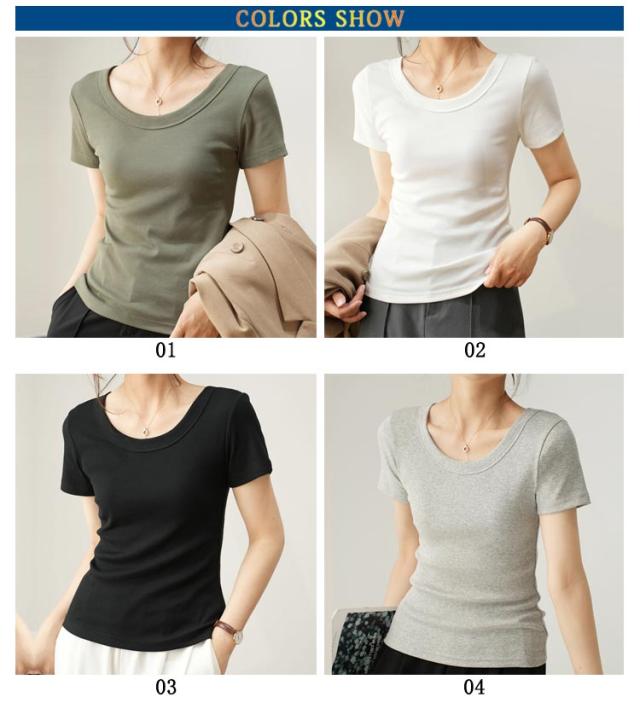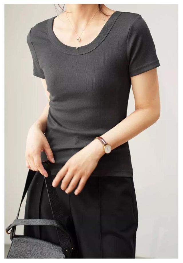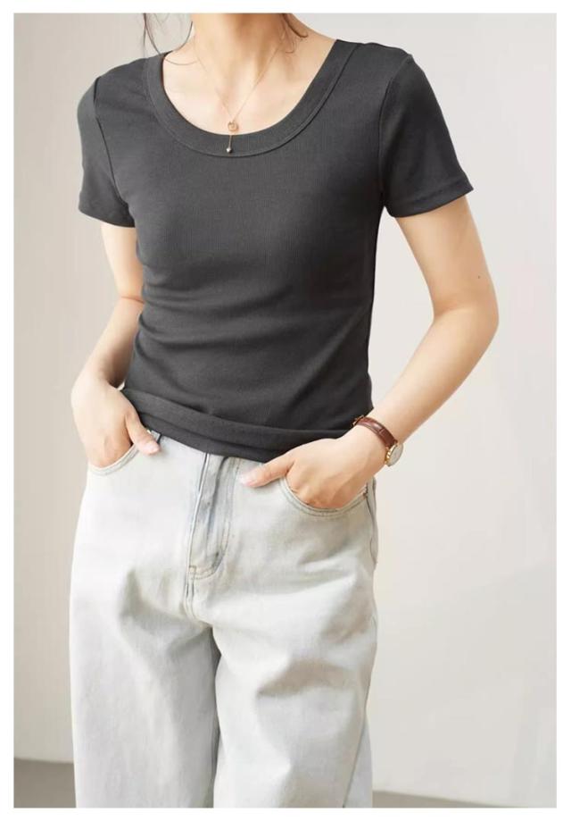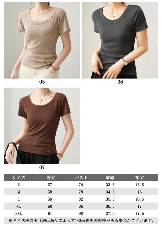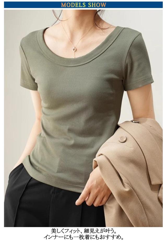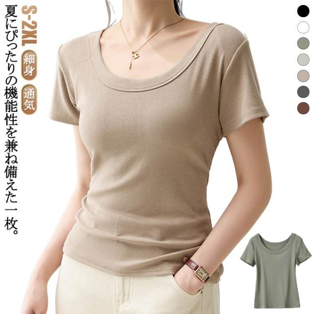 tシャツ 細身 半袖 スリム 無地 Tシャツ トップス カットソー 細見え 通気 Uネック 着痩せ レディース tシャツ 肌触り良い 春 夏 通勤 普段着 着回し 母の日 誕生日 プレゼント 大きいサイズ 黒 白 ブラック ホワイト グレー
