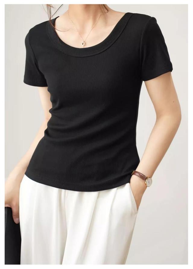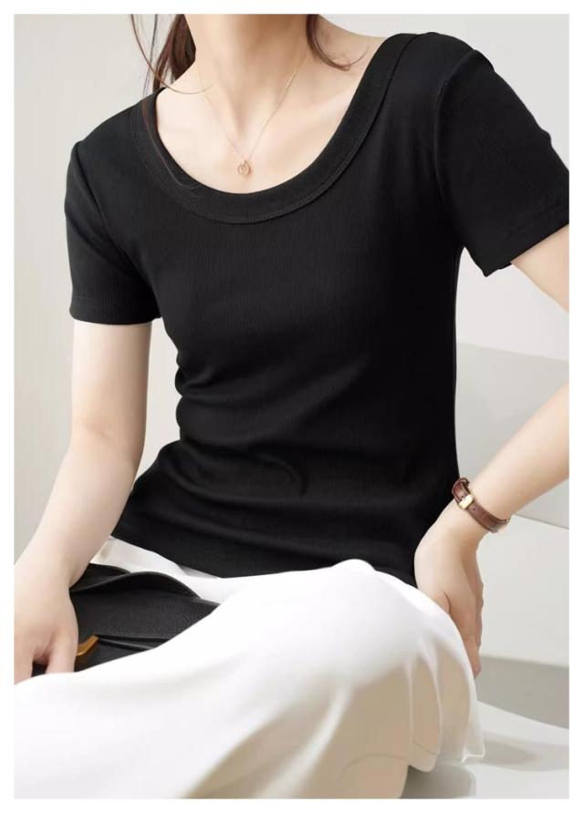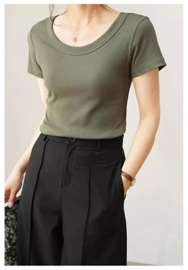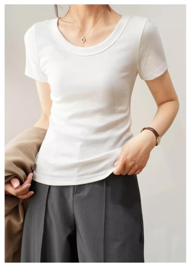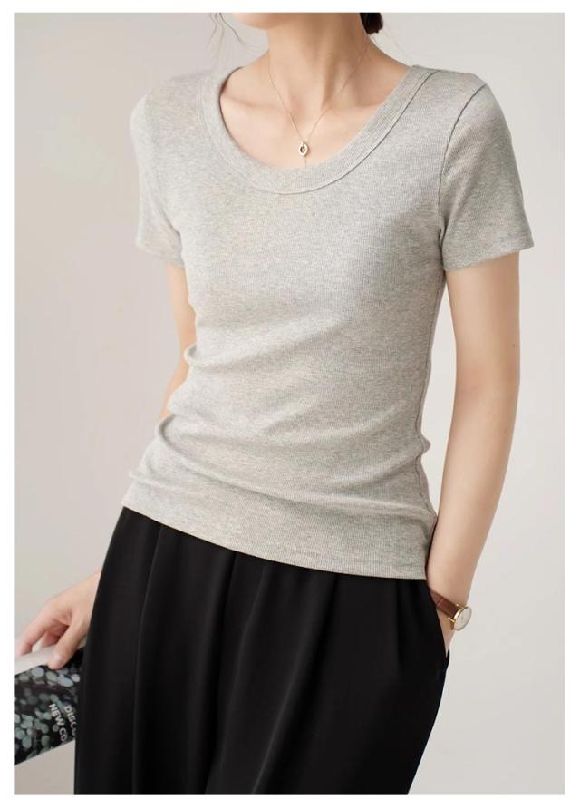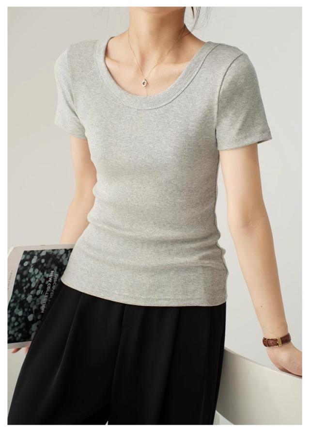 tシャツ 細身 半袖 スリム 無地 Tシャツ トップス カットソー 細見え 通気 Uネック 着痩せ レディース tシャツ 肌触り良い 春 夏 通勤 普段着 着回し 母の日 誕生日 プレゼント 大きいサイズ 黒 白 ブラック ホワイト グレー