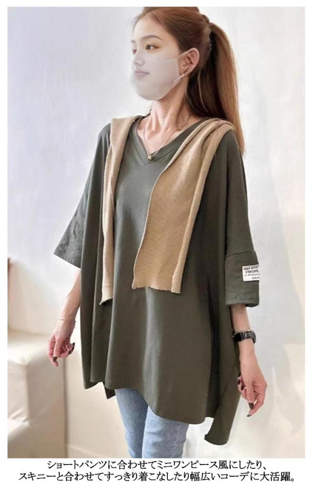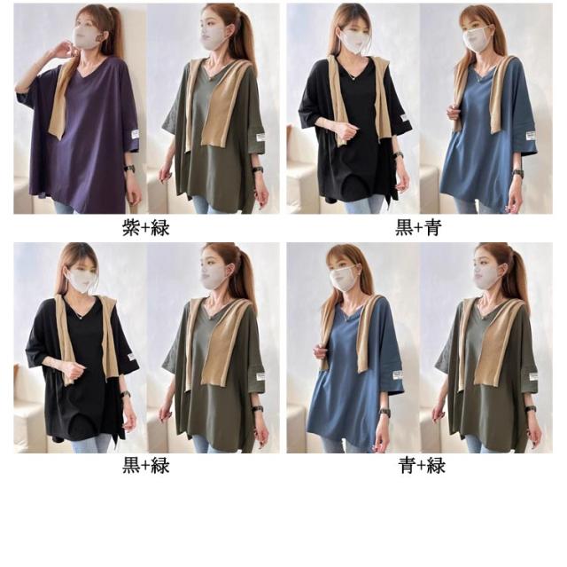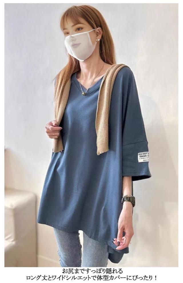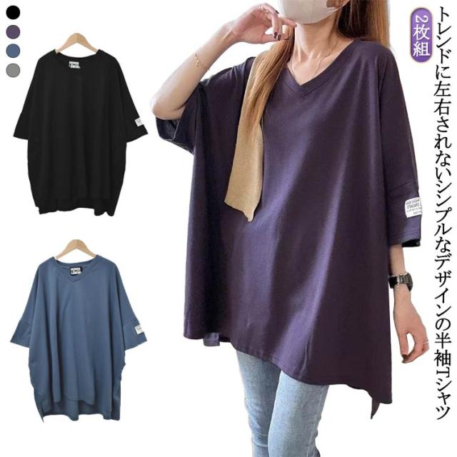 ゆったり トップス レディース 5分袖 お尻隠し ロング丈 大人かわいい 2枚組 ゆる カットソー ビッグシルエット ドロップショルダー ティシャツ 無地 体型カバー ワイド 半袖ロングTシャツ レディース 大人可愛い おしゃれ マタニティ