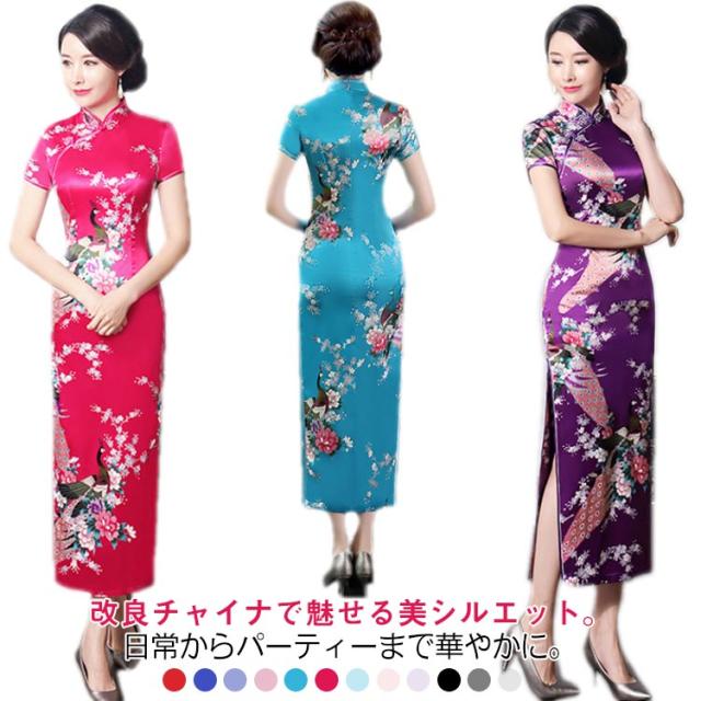 レディース ワンピ 大きいサイズ 改良型 ロング チャイナ風ドレス チーパオ チャイナドレス チャイナ服 ロングワンピース 演奏会 舞台衣装 結婚式 二次会 S−6XL