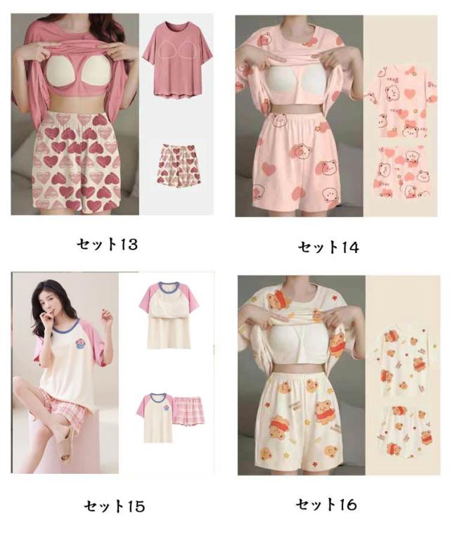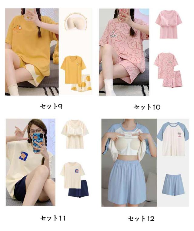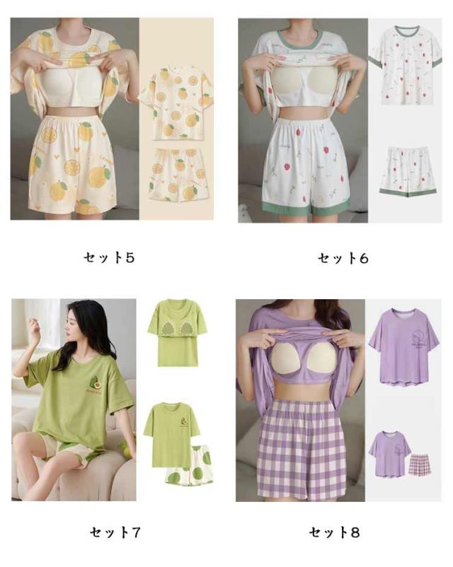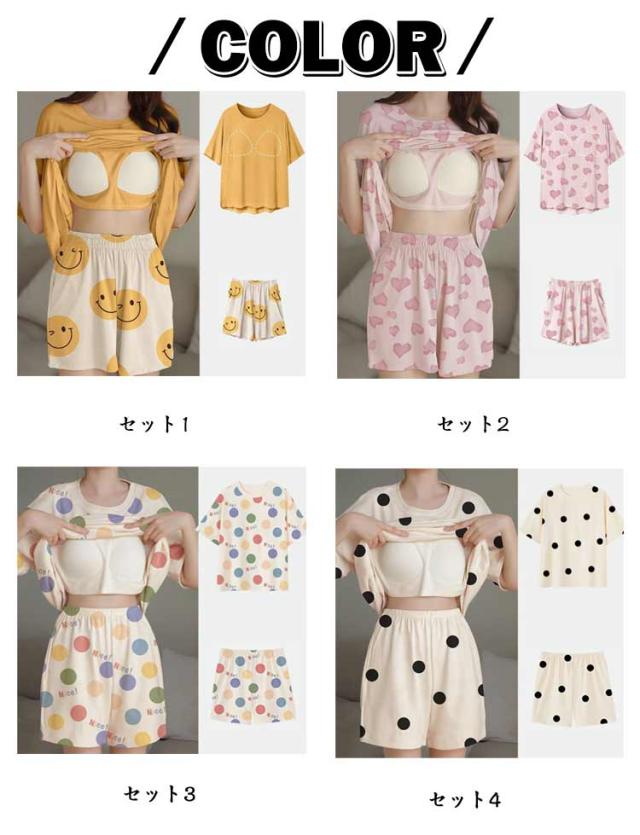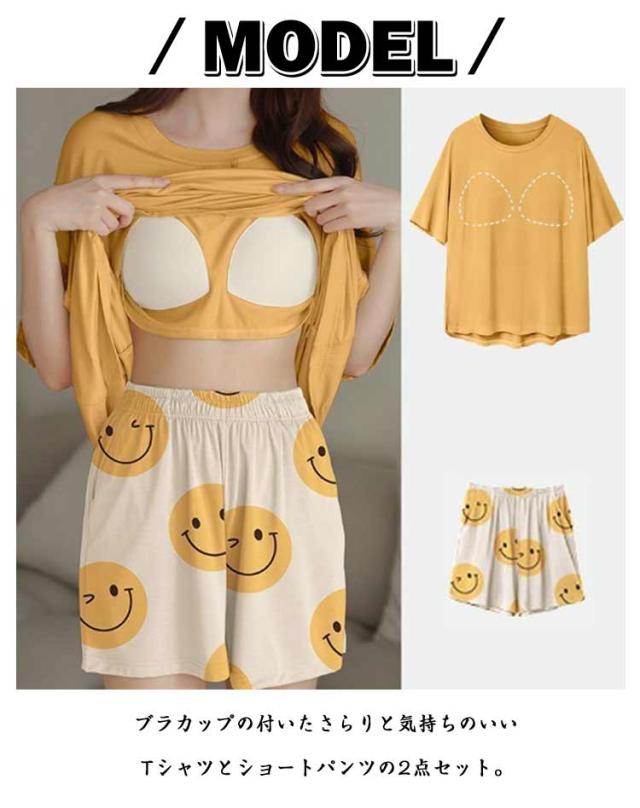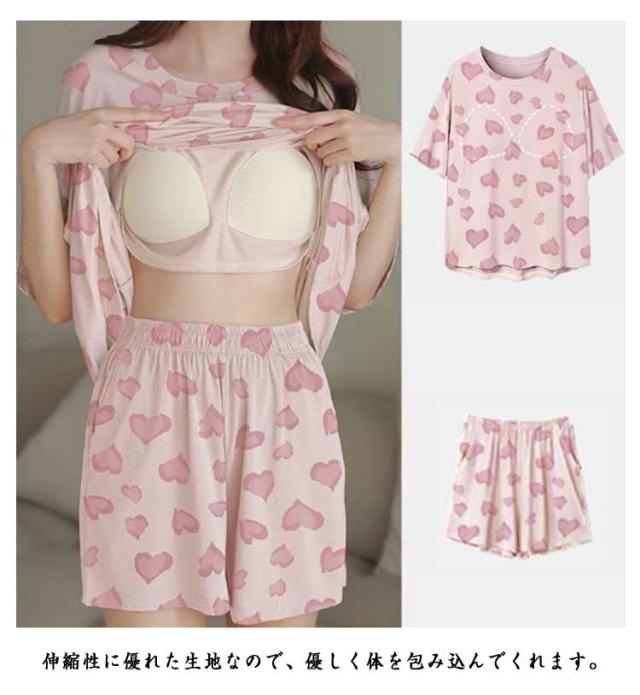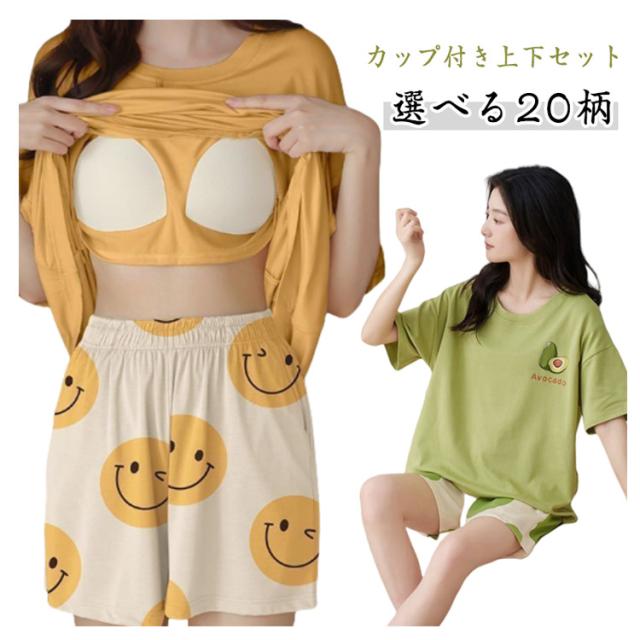 短パン パジャマ レディース パジャマ ルームウェア セットアップ ショートパンツ 夏 パジャマ カップ付き プルオーバー 半袖 ナイトウェア 楽ちん 可愛い 部屋着 リラックスウェア 春 夏 大きいサイズ カジュアル