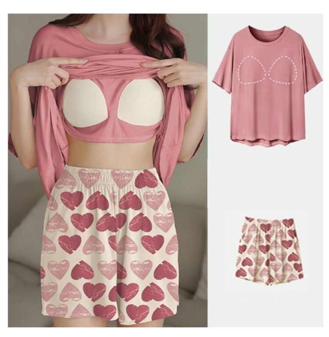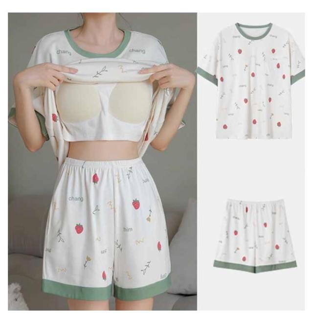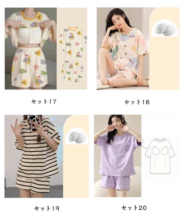 | 【カップ付き上下セット】【選べる20柄】 ブラカップの付いたさらりと気持ちのいいTシャツとショートパンツの2点セット。 伸縮性に優れた生地なので、優しく体を包み込んでくれます。 ブラジャーの締め付け感から解放されつつ、サラサラと心地いいひとときを過ごせます。 部屋着として着るのはもちろん、インナーやジムウエアにもオススメです。 夏のリラックス時間には、カップ付きのルームウェアがおススメ♪ | |