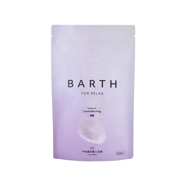 BARTH FOR RELAXは眠りに向き合うBARTHが、オリジナルの処方設計で重炭酸イオン*?による温浴効果とリラックスできる香りを両立した中性重炭酸入浴剤です。