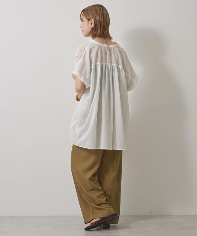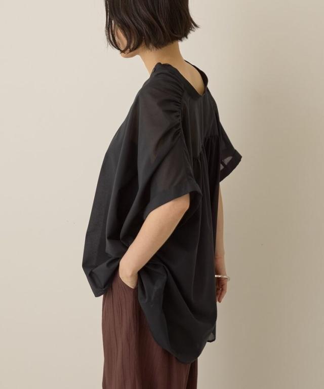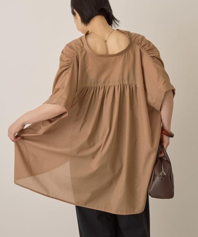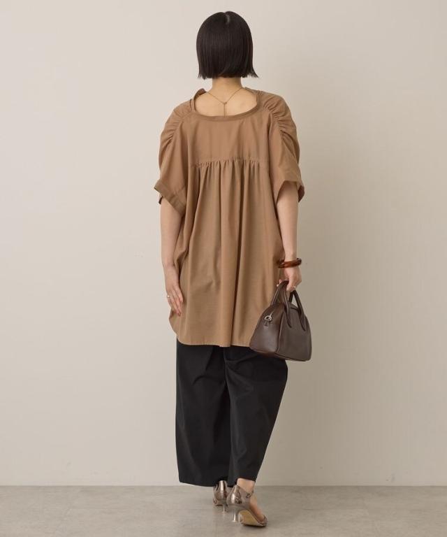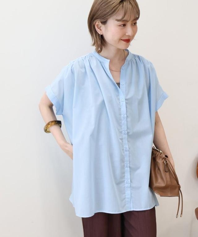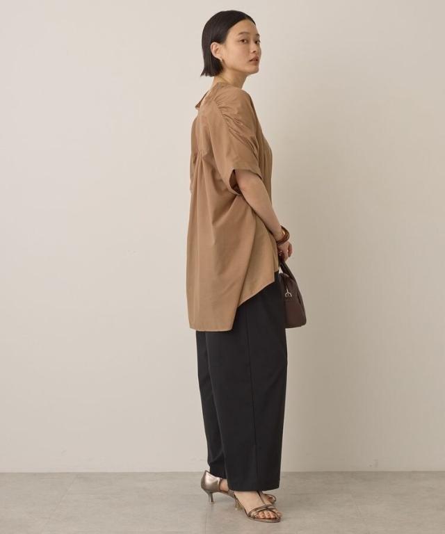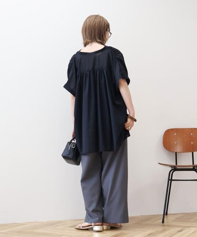 イージーケア 接触冷感フレンチスリーブギャザーシャツ