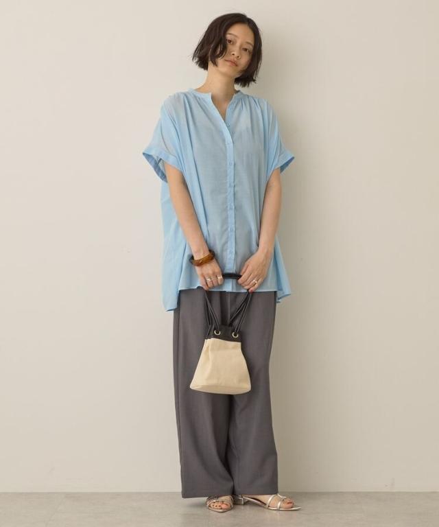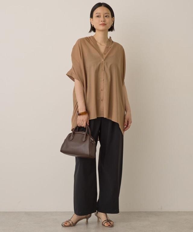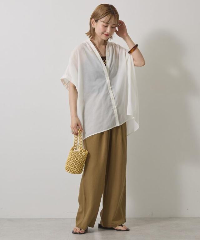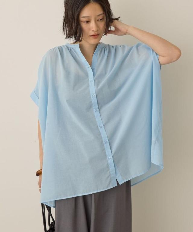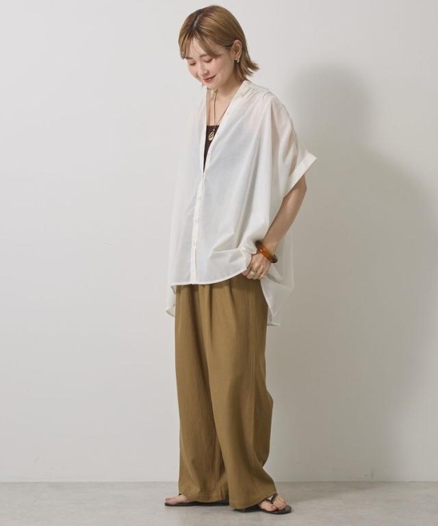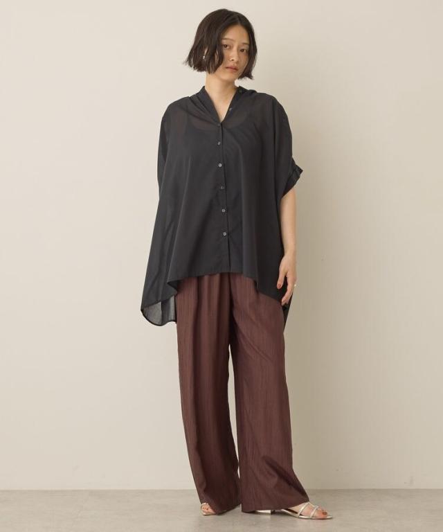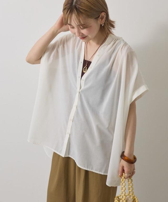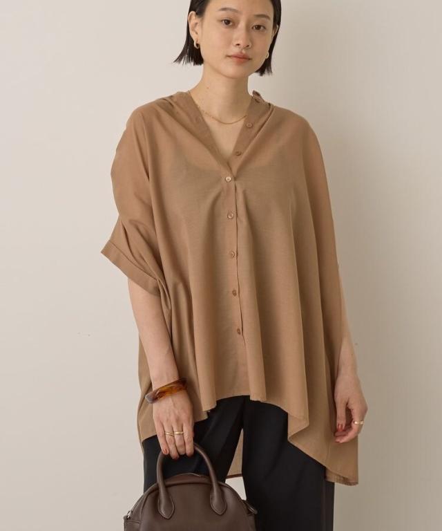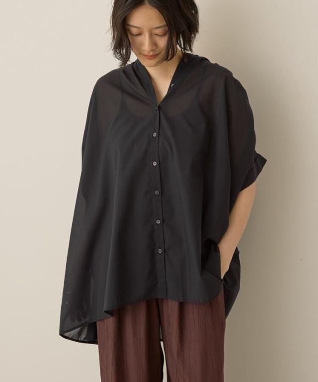 一枚で華やかに着映えるオーバーシルエットのシャツ。接触冷感性に加えイージーケア仕様も兼ね備えたシーズンスタイルにピッタリな一枚です。細めに仕立てた襟と前たてが顔周りをすっきりと演出し、長めの着丈で自然とスタイルアップも後押し。ボタンを開けてスキッパーネックのようにアレンジした着こなしもおすすめです。***接触冷感***触れた瞬間ひんやりと感じる、接触冷感性のある素材を使用しております。透け感[ややあり]