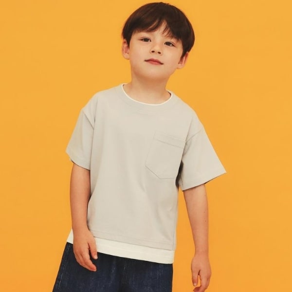 【110−160】レイヤード風半袖Tシャツ洗濯機OK