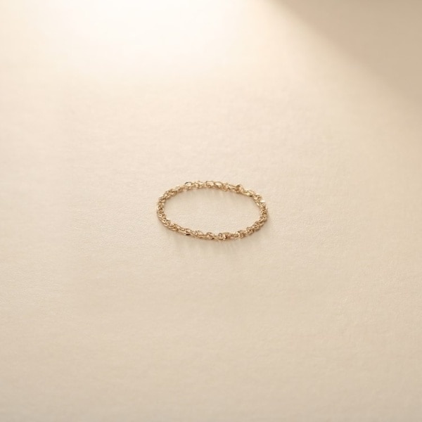 ねじれたデザインが特徴的なチェーンのリングは、ゴールドの素材の持つ美しさが際立つシンプルなデザイン。