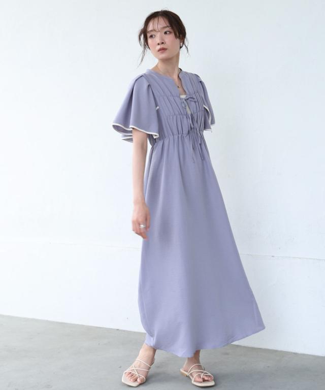 バブ(Bab)/【S・Mサイズ展開】配色パイピングスクエアスリーブワンピース