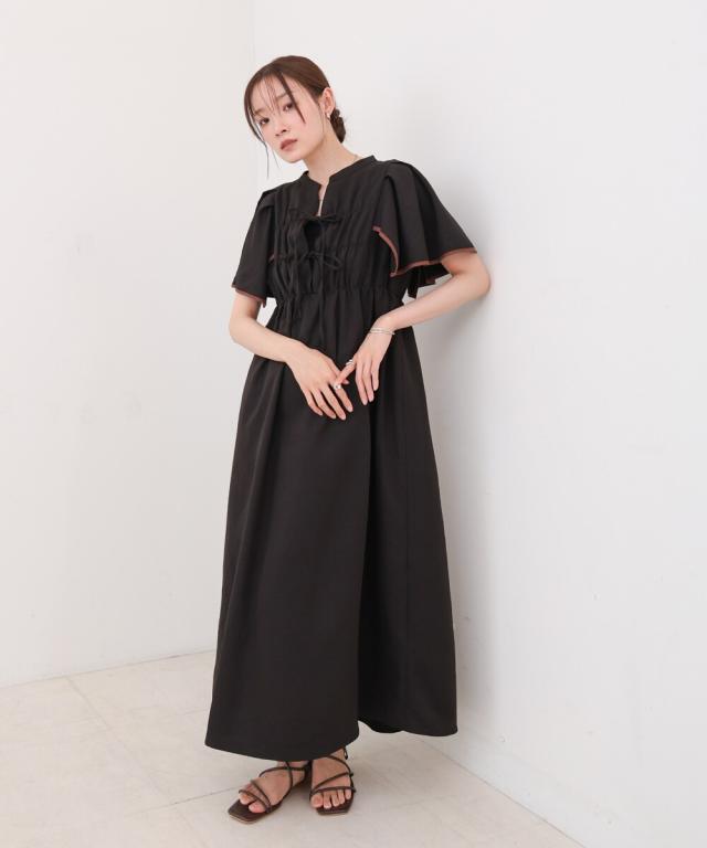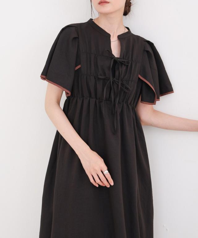 【S・Mサイズ展開】配色パイピングスクエアスリーブワンピース