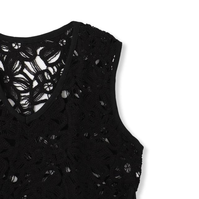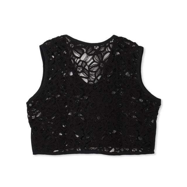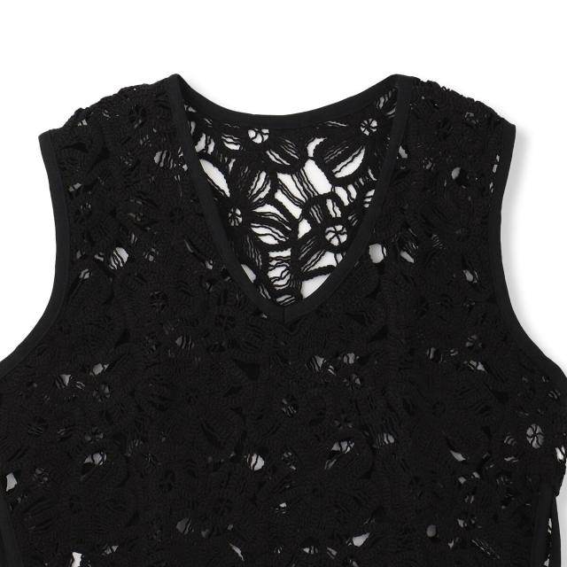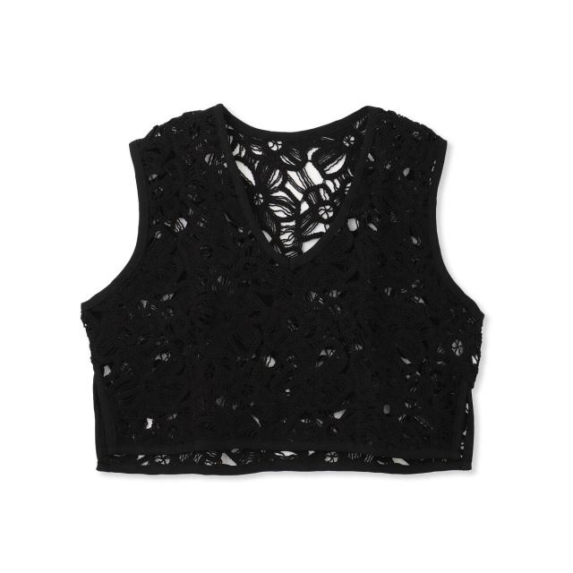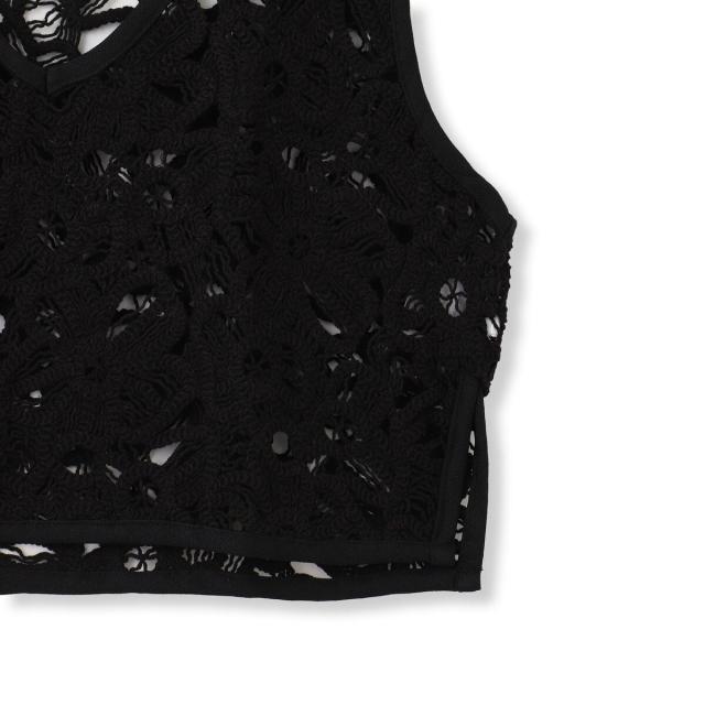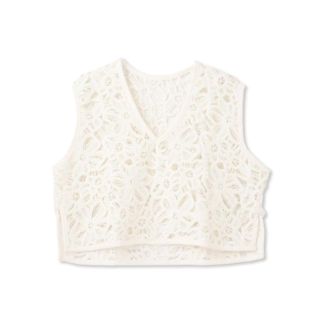 表情のあるフラワー刺繍レースがポイントのベスト。