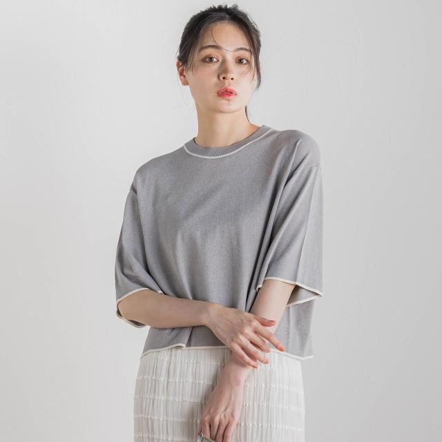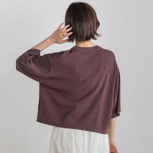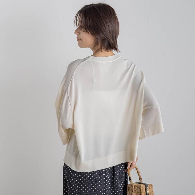 さらっとしたドライタッチなレーヨンナイロンの糸でTシャツライクに仕上げたニットプルオーバー。