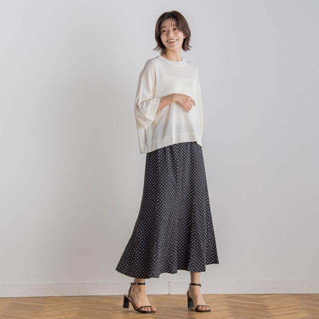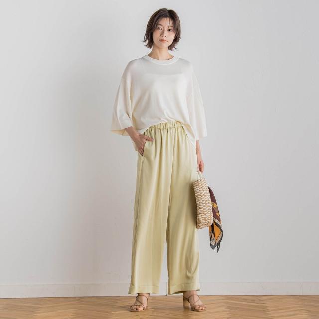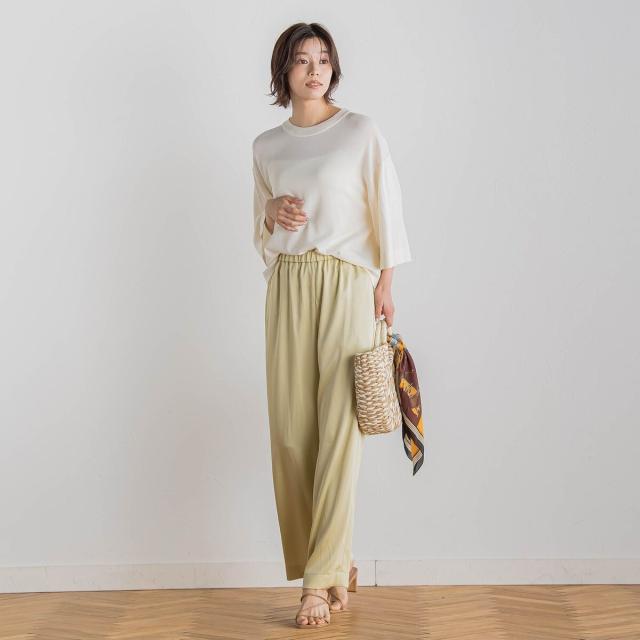 シンプルなデザインですが、Tシャツよりもきれいめでニットならではの仕上がりが際立つ1枚です。