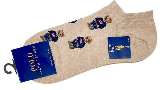 未使用 ラルフローレン ソックス レディース ベージュ キッズ 23-25cm オーガニックコットン混 フラッグミニベア総柄 ベア 靴下 スニー