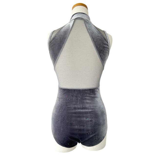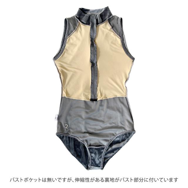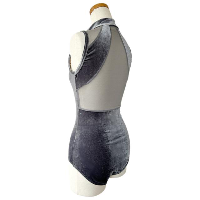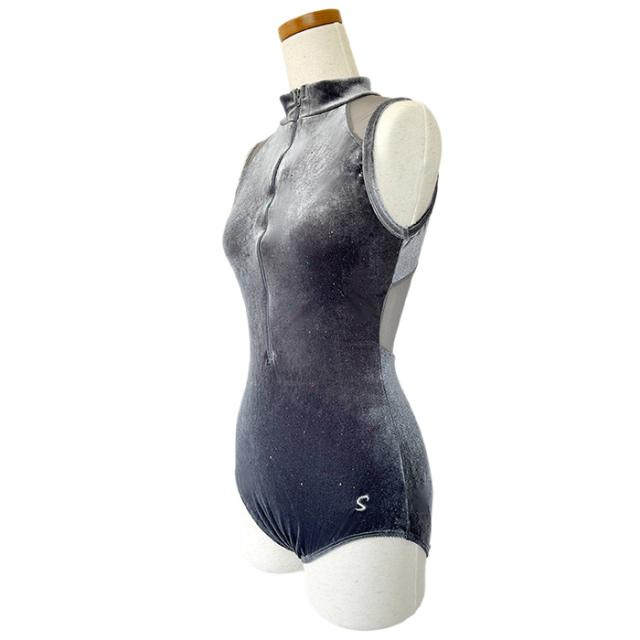 バレエ レオタード 【サンシャ】50BC2105P(MARTINIQUE)マルティニーク ベロア ノースリーブ ハイネック レオタード ジュニア・大人 前開き ファスナー ジッパー 付き メッシュ ラメ おしゃれ ストレッチ レッスン 練習 着 グレー 150 155 160 165