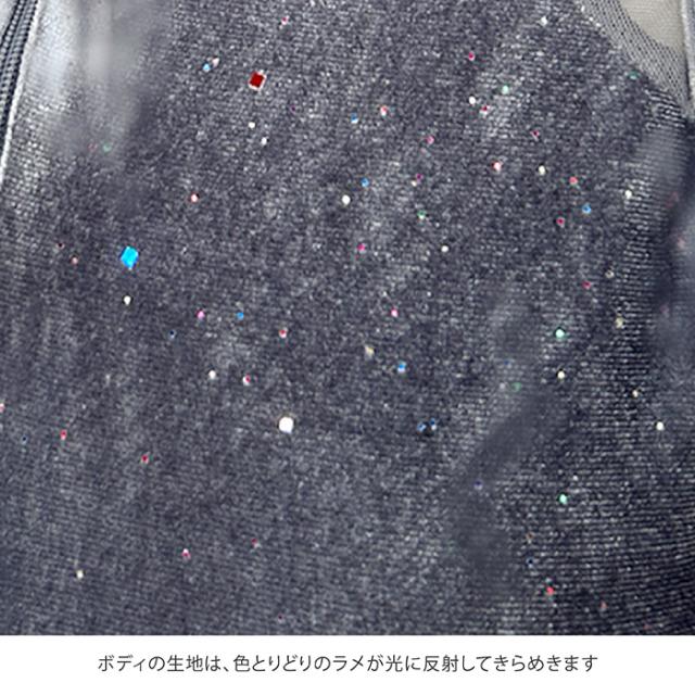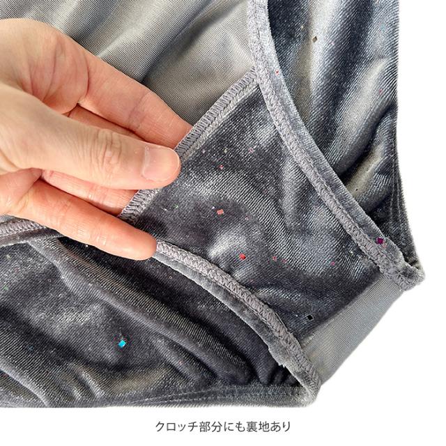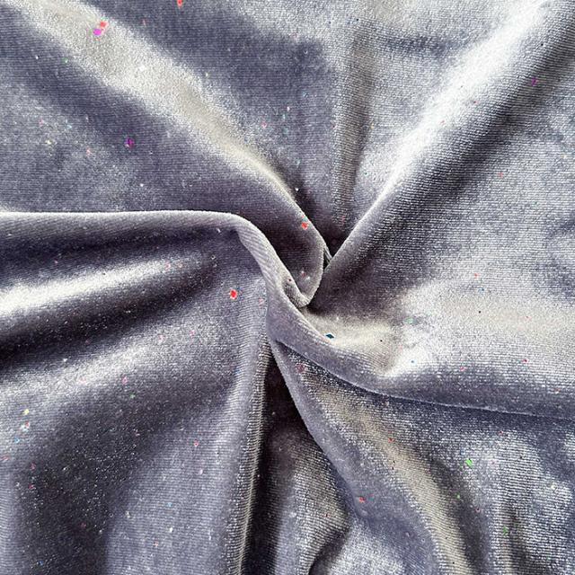 ベロア生地の表面には、大きさと色の異なるラメが散りばめられ、動くたびに光が反射しキラキラ光ります。