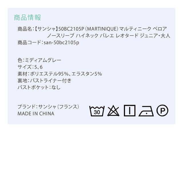 【サンシャ】50BC2105P(MARTINIQUE)マルティニーク ベロア ノースリーブ ハイネック バレエ レオタード ジュニア・大人
