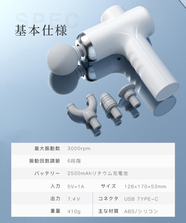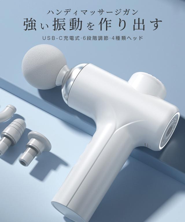 ハンディマッサージガン USB-C充電式 筋膜リリース機器 6段階調節 4種類ヘッド 軽量小型 大容量バッテリー 筋膜マッサージ器 静音設計 全身 肩 腰 背中 肩甲骨まわり お尻 ふくらはぎ マッサージガン 高頻振動 トレーニング フォーム バレンタインギフト