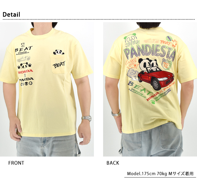 和柄ブランド【錦】の姉妹ブランドとして誕生した、お茶目なパンダをモチーフとした【PANDIESTA JAPAN】より「HONDA×PANDIESTA BEATネオンサイン半袖Tシャツ(585508)」のご紹介です。 今や、錦の定番モチーフとなった「錦PANDA」!! 今回は、吸水性と通気性に優れた綿100%の天竺素材を使った半袖Tシャツが登場しました。 小さなボディーに魅力がいっぱい! Hondaが生んだ傑作スポーツカー『BEAT(ビート)』をモチーフとした半袖Tシャツになります。 そんなスペシャルな一台に仲良く乗り込むパンディエスタのカップルをバックモチーフにデザインしており、刺繍で施しました。 また、フロントにはポケットから顔をのぞかせる『お馴染みのパンディエスタ』もデザインしており、刺繍で仕上げています。 シンプルになり過ぎてしまう夏のスタイリングに刺繍仕上げのTシャツはインパクトのあるアイテム。 柔らかくて肌触りが心地よい天竺素材は季節を問わずスタイリング可能な一枚です。 | |||||||||||||||||||||||||