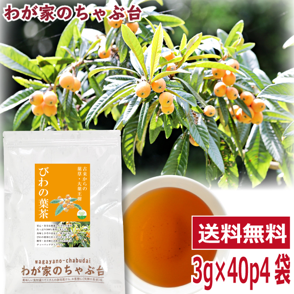 びわの葉茶 3g×40P×4袋 〜 送料無料 ビワの葉茶 びわのは茶 ティーバッグ ビワ 枇杷 葉 茶 大薬王樹 健康茶 ノンカフェイン メール便