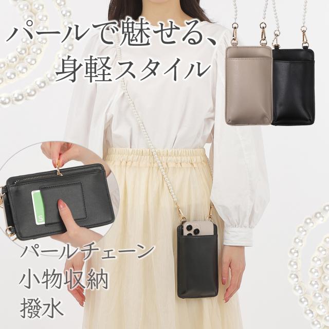 スマホポーチ ショルダーバッグ スマホショルダー スマホバック バック 高級感 パールチェーン付き スマホポーチ 軽量 撥水 おしゃれ かわいい ミニショルダーバッグ レディース 携帯ポシェット 斜めがけ 肩掛け バッグ【送料無料】
