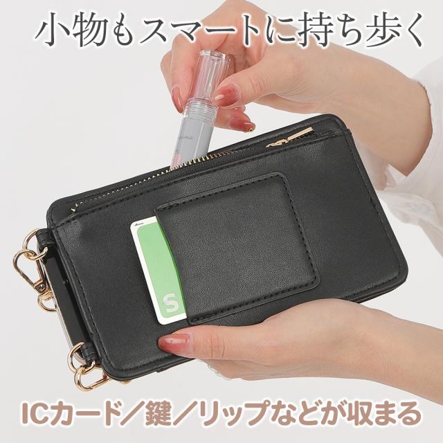 スマホもICカードもファスナー付きポケットにスッキリ収納