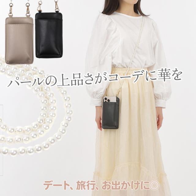 パールチェーン付きスマホポーチ