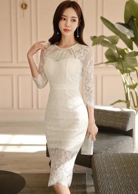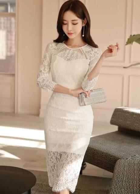 ワンピース 結婚式 着痩せ おしゃれ レースワンピ セクシーワンピース キャバ 膝丈 長袖大人 スタイル上品 韓国 二次会 発表会 お呼ばれ同窓会 謝恩会女子会披露宴 パーティー